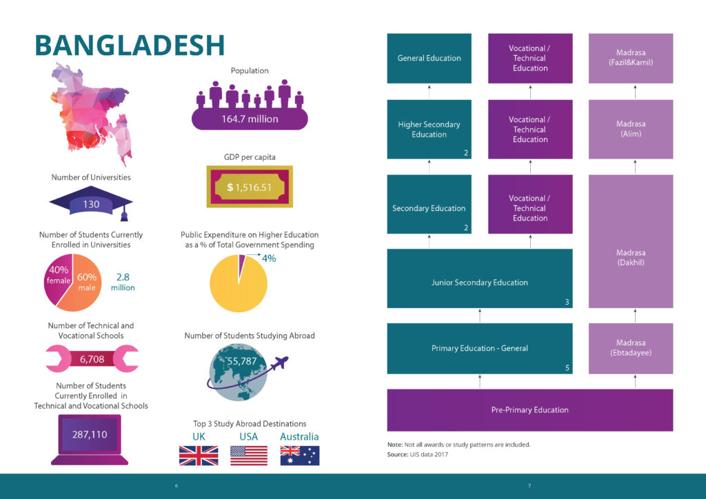 During the symposium, participants were provided with a factual booklet containing informational graphics on higher education systems throughout South Asia. The booklet provided a basic comparative analysis of national educational systems.
